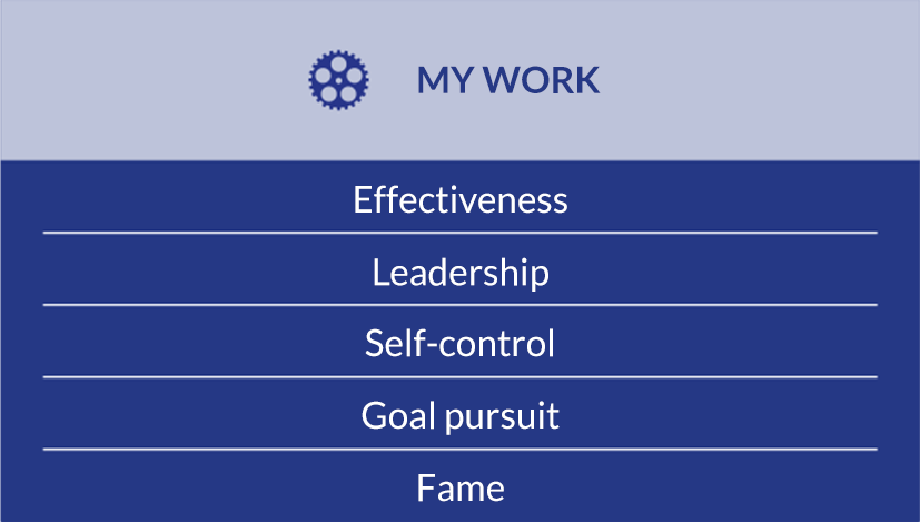 A tool designed to identify key predictors of achieving success in a professional career. It measures the level of efficiency in action, attitude and goal pursuit as well as charisma associated with leadership. It provides information on the inner strength required at work.