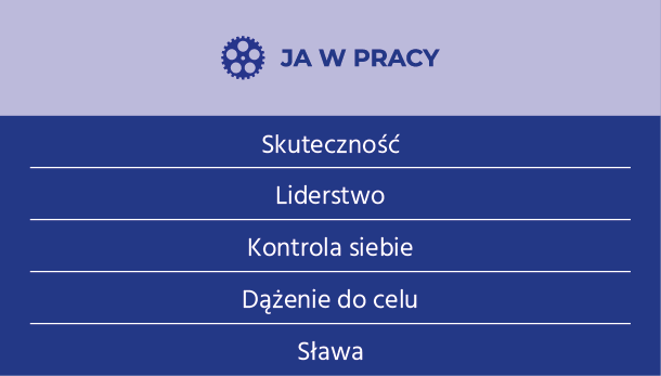 Narzędzie przeznaczone do zidentyfikowania kluczowych predyktorów osiągnięcia sukcesu w pracy zawodowej. Bada poziom skuteczności działania, nastawienia i dążenia do celów oraz charyzmę związaną z liderstwem. Daje informację o wewnętrznej sile potrzebnej w pracy.